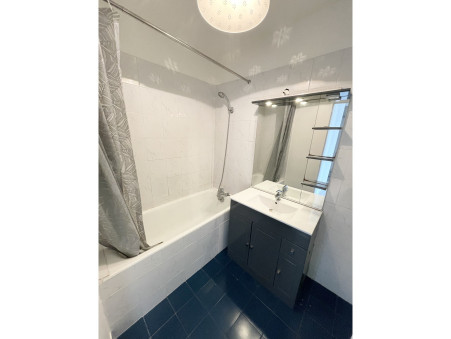 Appartement de 2 pièces comportant: une entrée avec rangements, un séjour avec cuisine américaine, dégagement, une chambre avec placard, salle de bains, WC séparé.